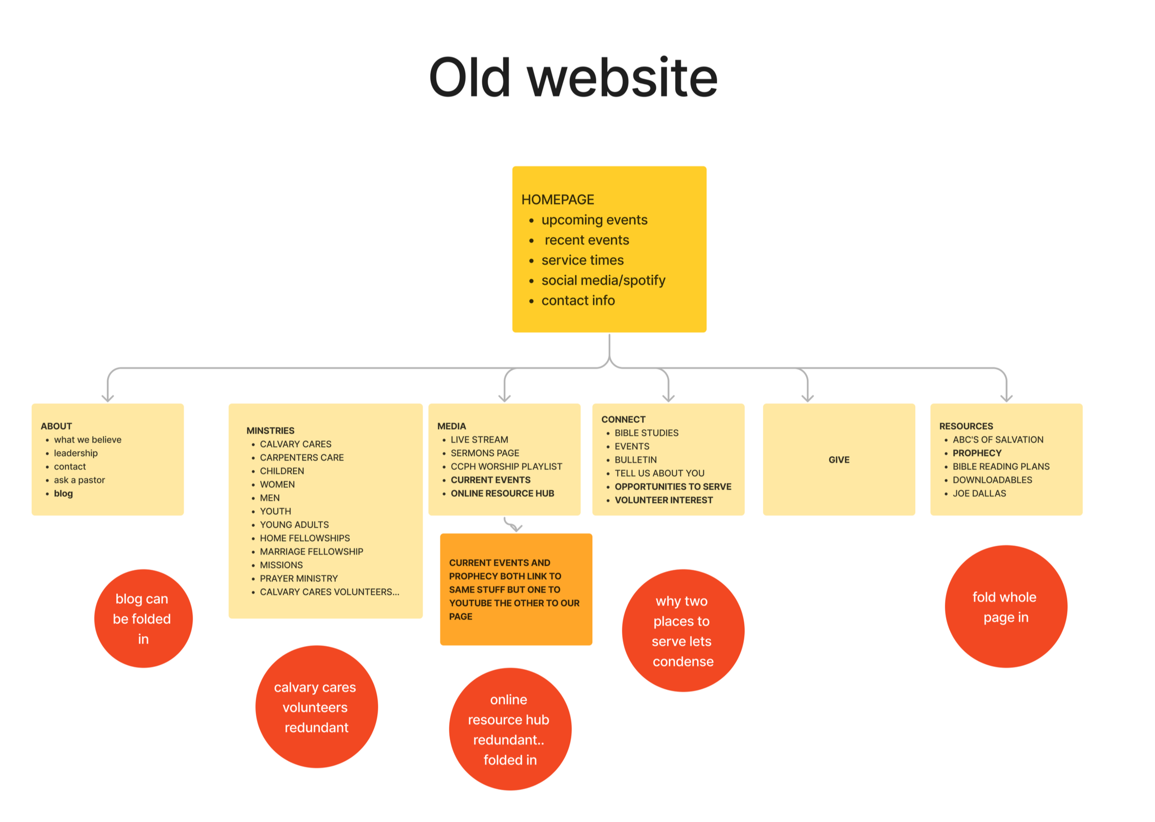 10 redundant pages created confusion (multiple sign-up pages for the same ministries, duplicate event calendars)